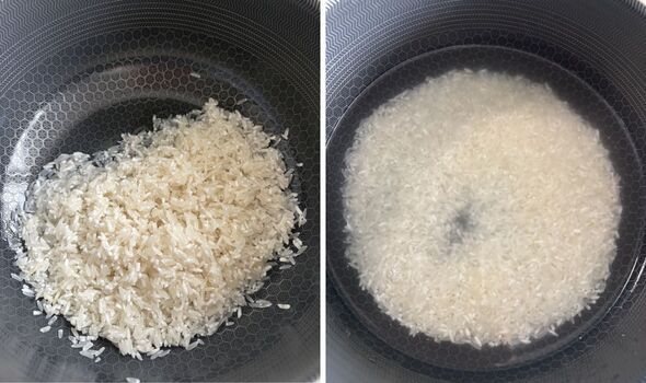 Next, rinse the rice in cold water until it runs clear. This is extremely important because it removes excess starch, which can make it turn stodgy.
